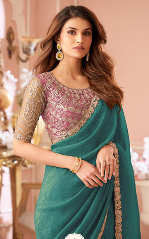 Attached Fabric Saree with Blouse Piece – Party & Festival Wear