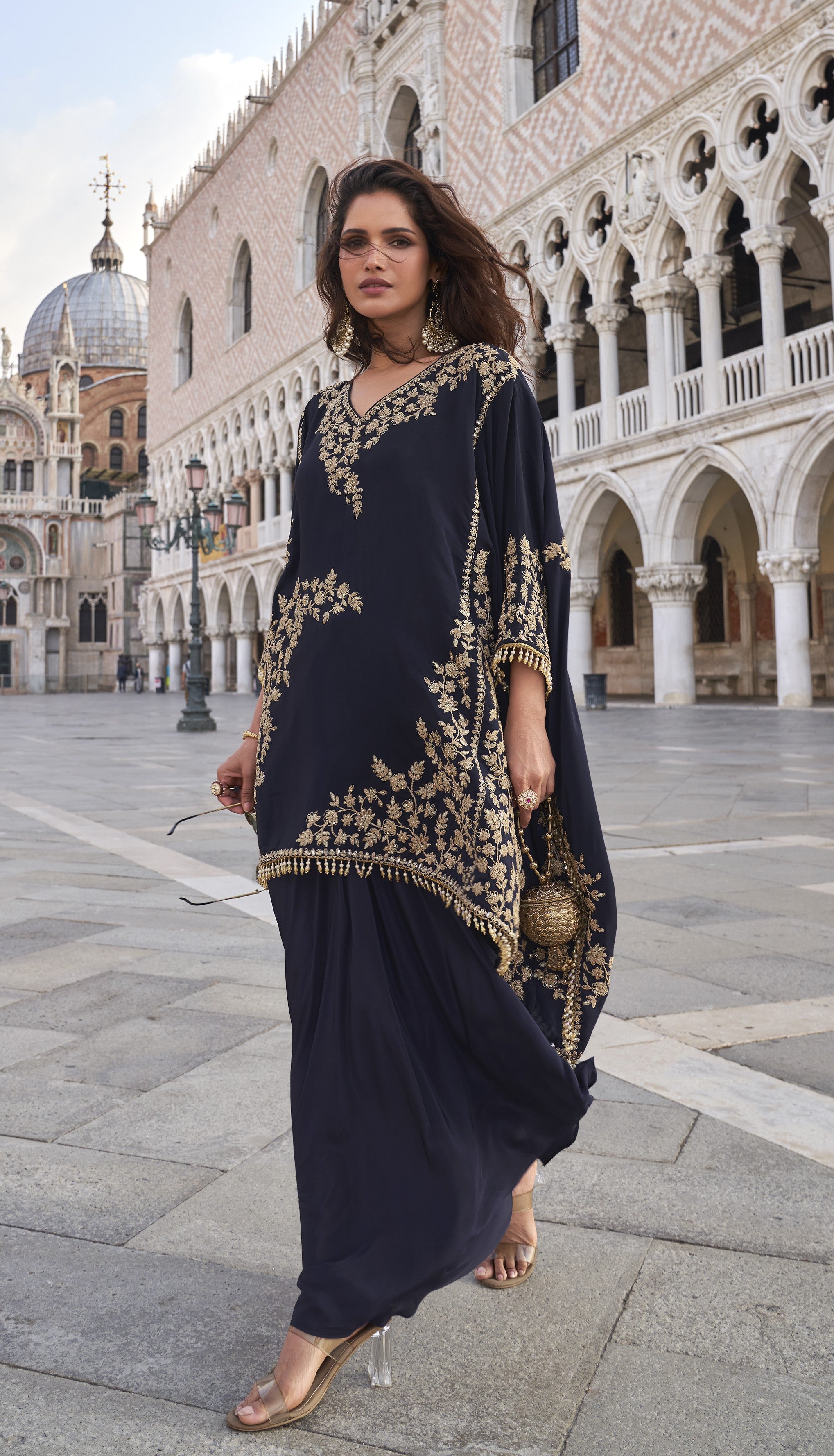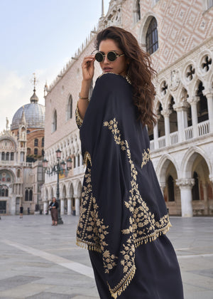 Black Real Premium Crepe Palazzo Suit with Beads Embroidery & Blouse