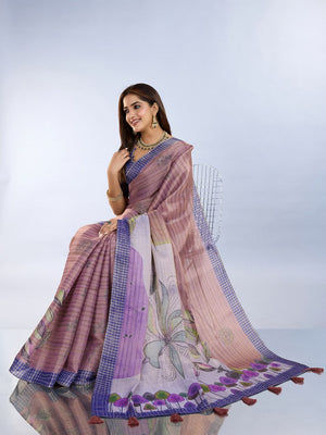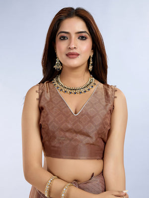 Brown Abstract Printed Erode Anmol Silk Saree with Designer Blouse Piece