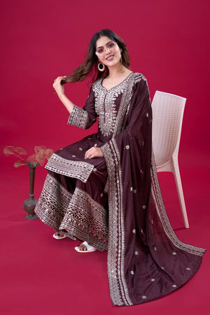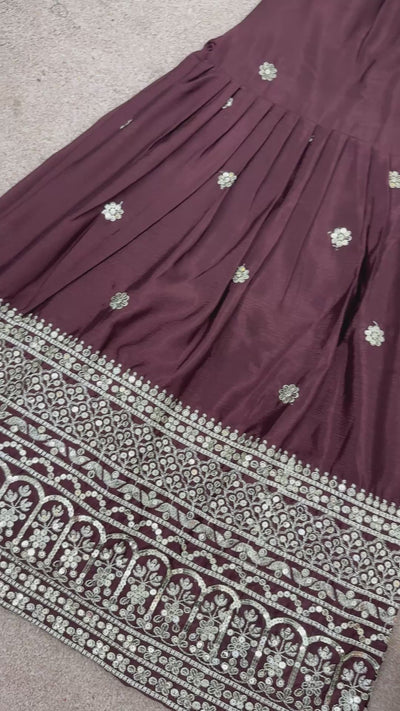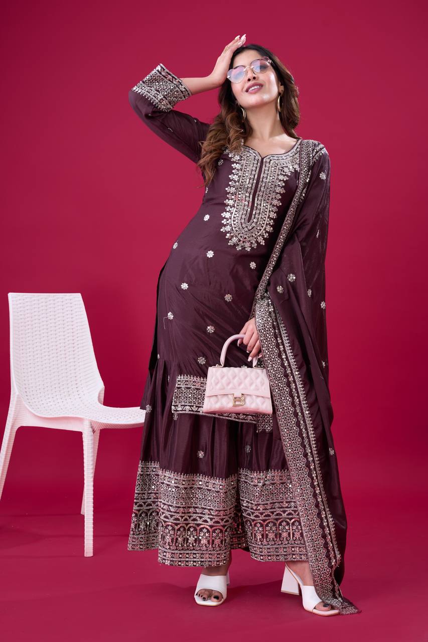 Heavy Chinnon Silk Embroidered Sharara Set with Dupatta