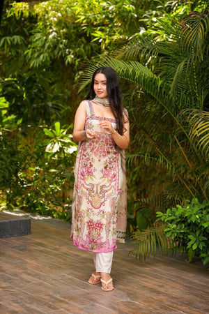 Elevate your ethnic wardrobe with this Cream French Crepe Kurti Set, designed for style and comfort. The stitched French Crepe kurti features delicate prints, paired with a stitched viscose bottom and a matching printed Chanderi dupatta. Perfect for festive occasions, family gatherings, or casual traditional outings.