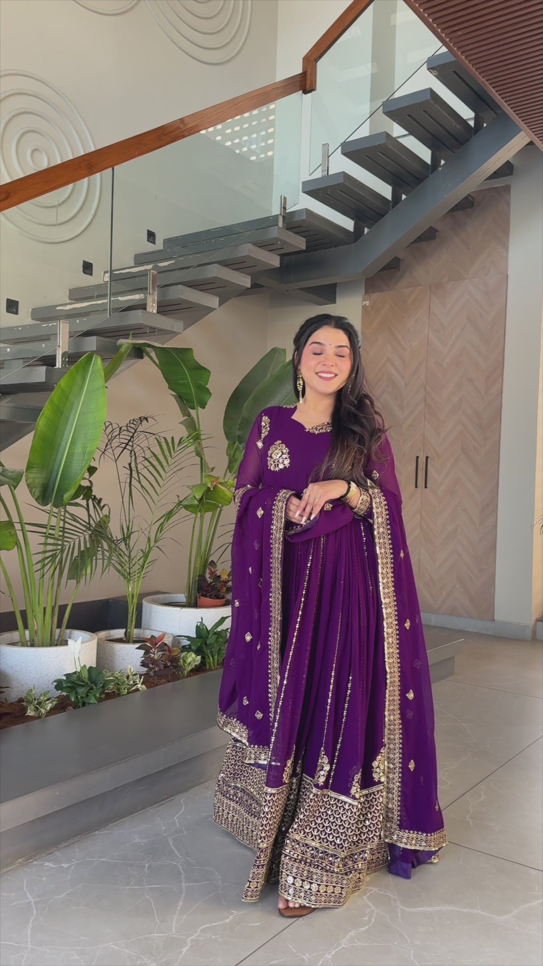 Faux Blooming Designer Gown with Dupatta – Zari & Sequins Embroidery