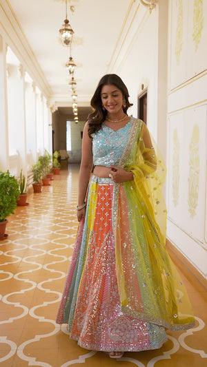 Faux Georgette Sequins Embroidered Lehenga with Net Dupatta | Wedding & Party Wear