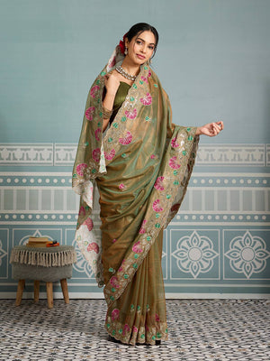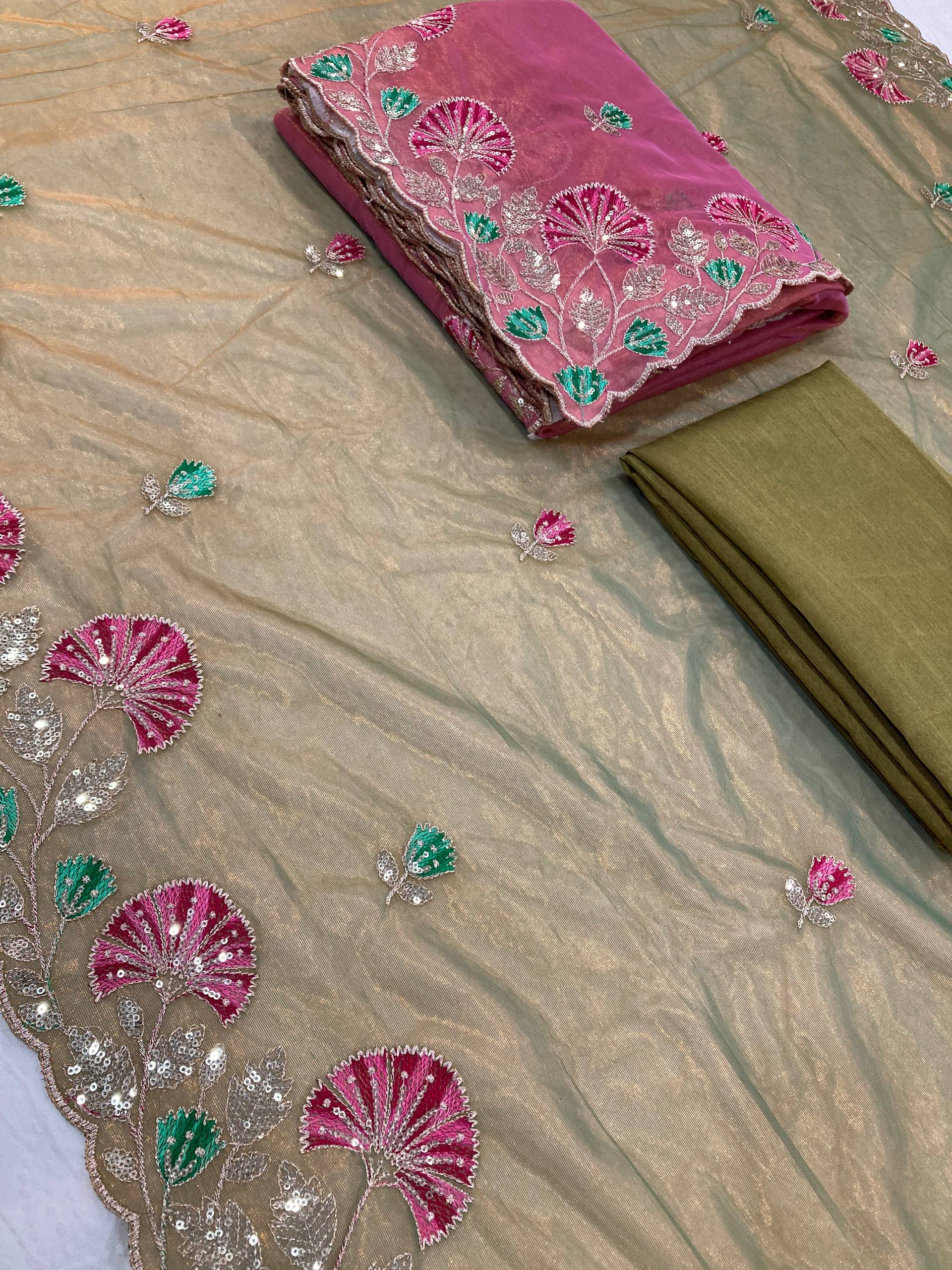 Party Wear Fendy Soft Net Saree with Chikankari C-Pallu Embroidery & Banglory Silk Blouse