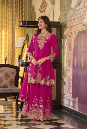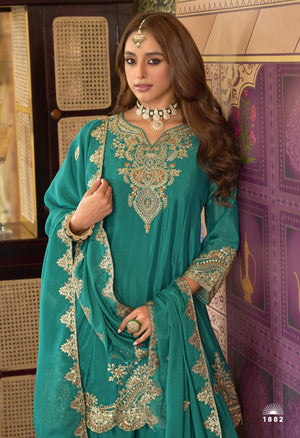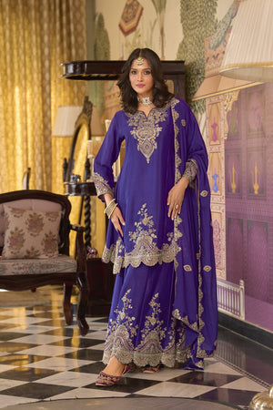 Heavy Chinon Embroidered Suit Set with Plazzo & Dupatta – Festive Wear Collection