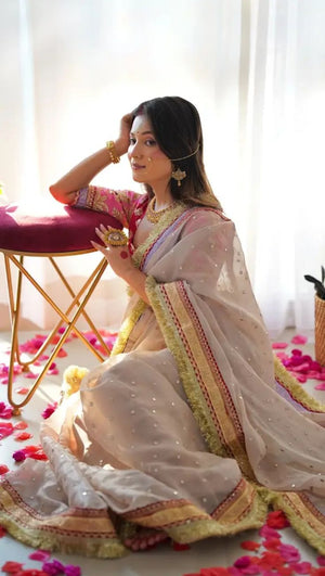 Luxurious Jimmy Choo Saree with Multi-Sized Sequins, Zari & Dori Work