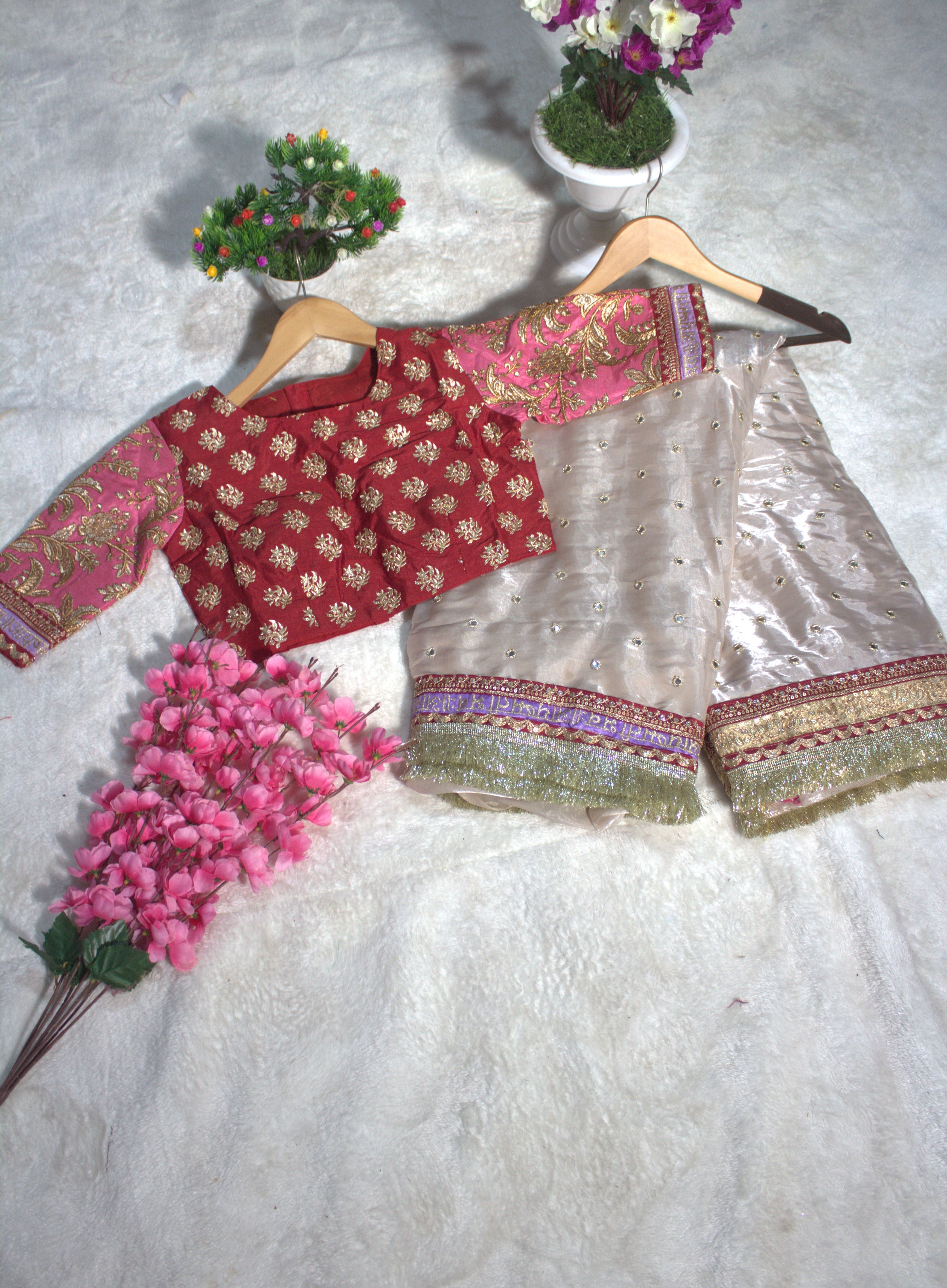 Paired with an unstitched Bangalori silk blouse featuring matching embroidery and sequins, this ensemble ensures you sparkle with sophistication at weddings, receptions, or grand evening celebrations. Crafted to shine and designed to stun, it’s the ultimate statement piece for your ethnic collection.