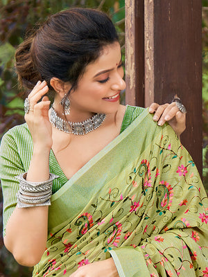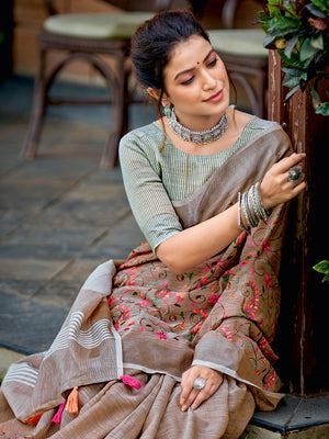 Elevate your ethnic wardrobe with our Linen Cotton Embroidered Saree, crafted for both comfort and elegance. Made from breathable linen cotton fabric, this saree is adorned with delicate embroidery work that adds timeless charm. The soft texture makes it perfect for all-day wear, whether for festive gatherings, parties, or casual occasions.