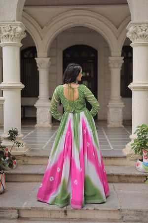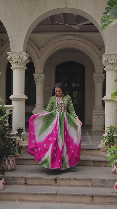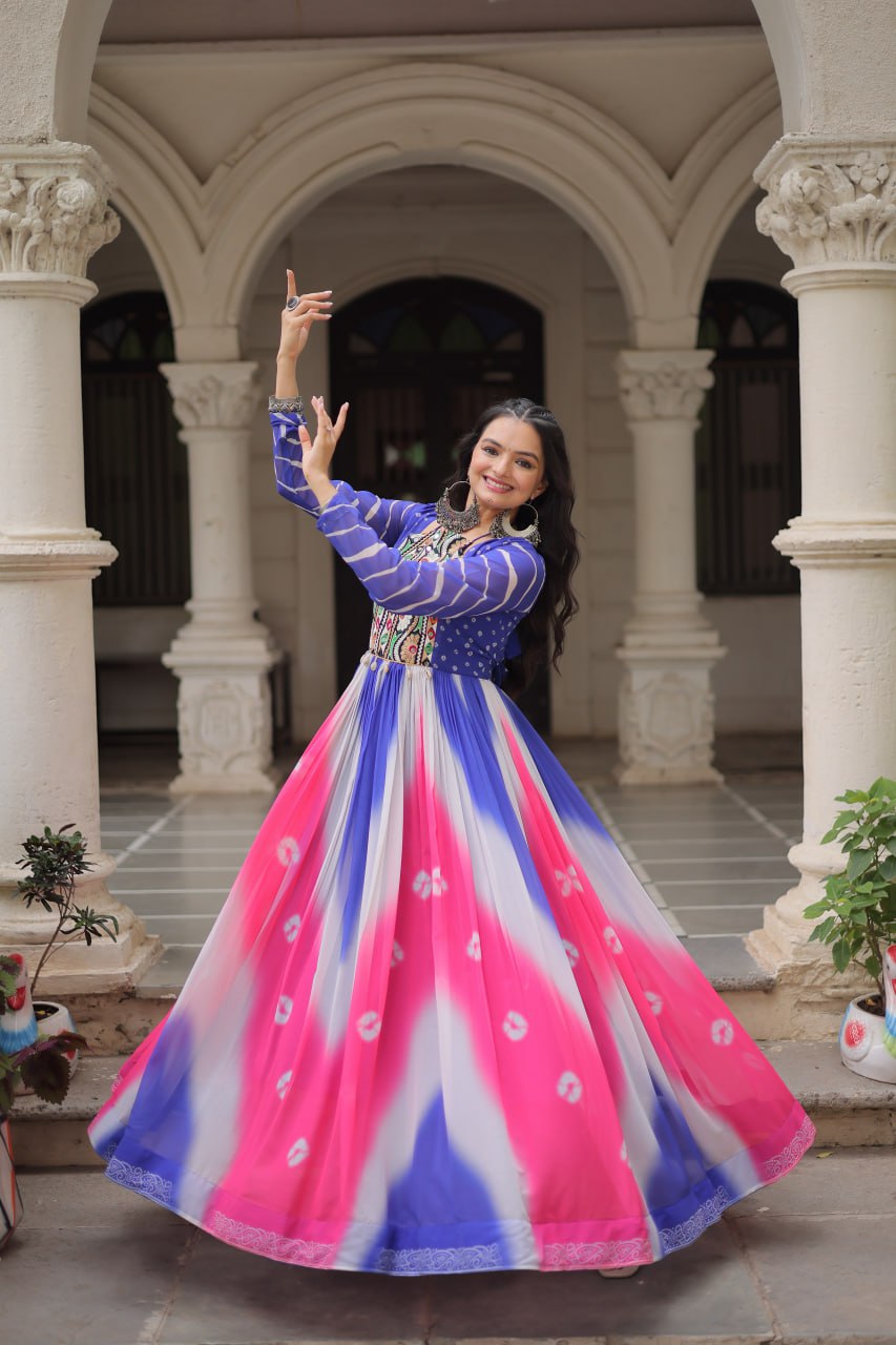 Bandhej Print with Gamthi Embroidery & Mirror Work - Navratri Gown Collection 2025