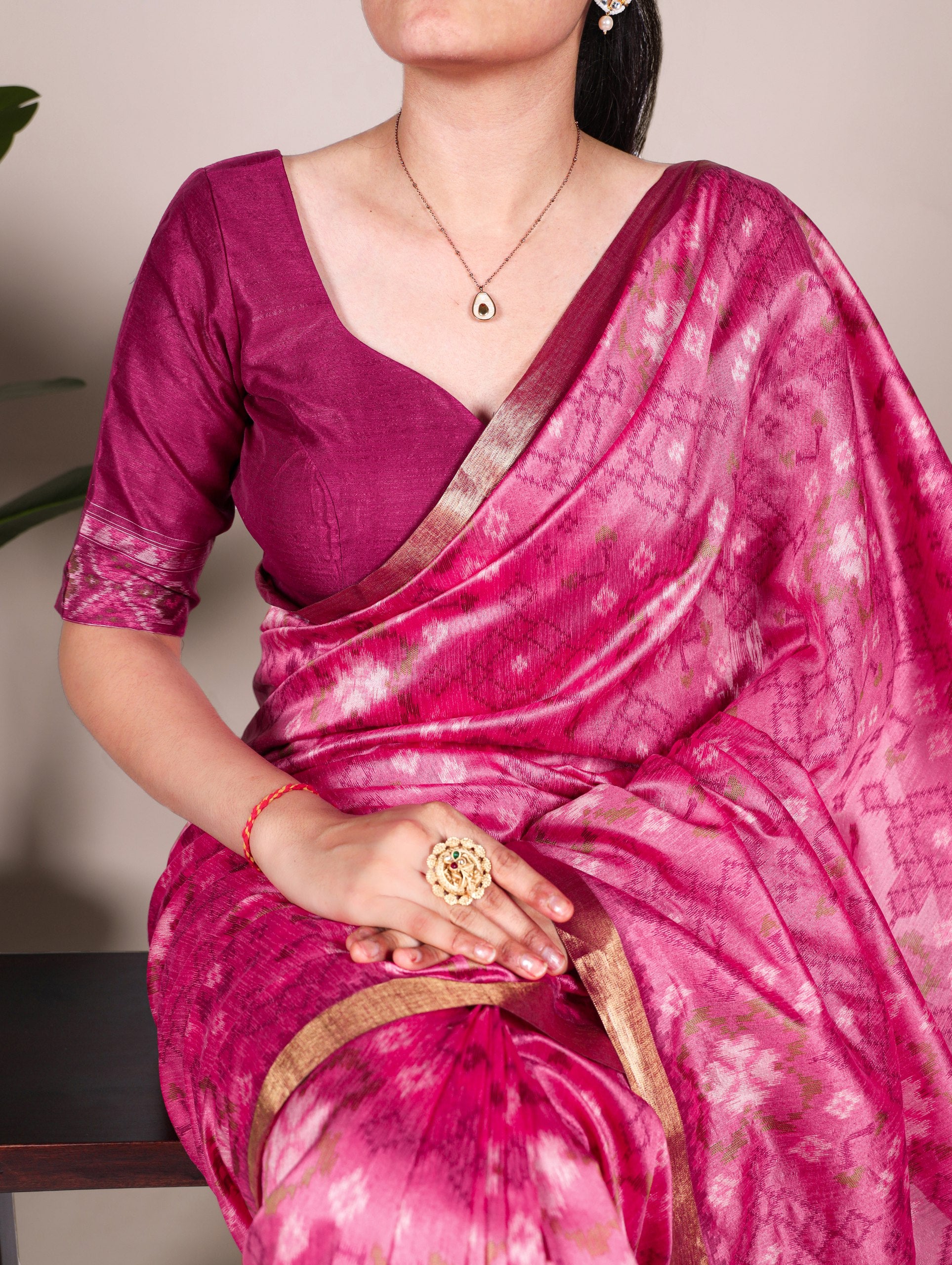 Patola Print Jacquard Silk Saree with Zari Weaving & Blouse Piece