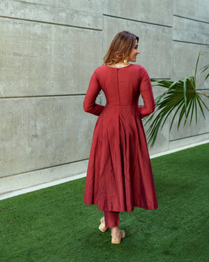 Exquisite embroidery, luxurious fabric, and a flawless fit make this Anarkali suit set a must-have for your festive wardrobe. Pair with statement jewelry and heels to complete your look.