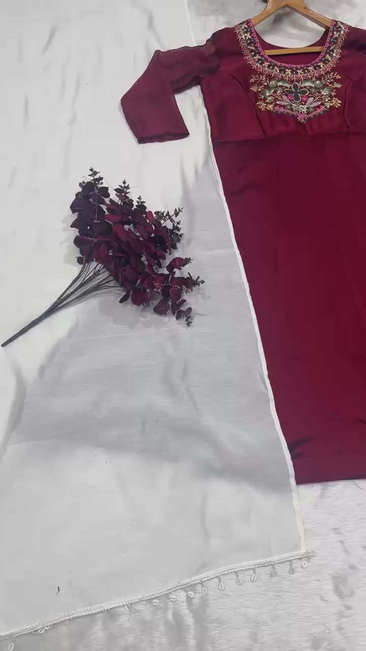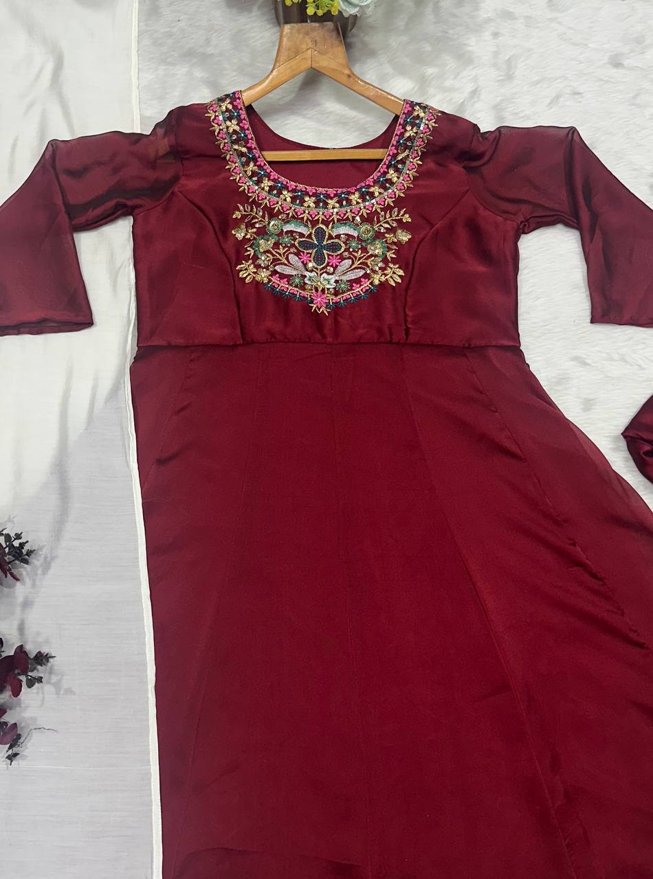 Step into regal elegance with our Premium Ready-Made Anarkali Suit Set, crafted for women who appreciate luxury and high-quality ethnic fashion. This 3-piece ensemble features intricate multi-thread embroidery combined with 3mm sequins on rich KesriyaNC Silk, offering a stunning festive and party-ready look. Fully lined for comfort, this Anarkali is perfect for weddings, celebrations, and special occasions.