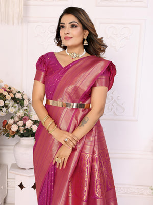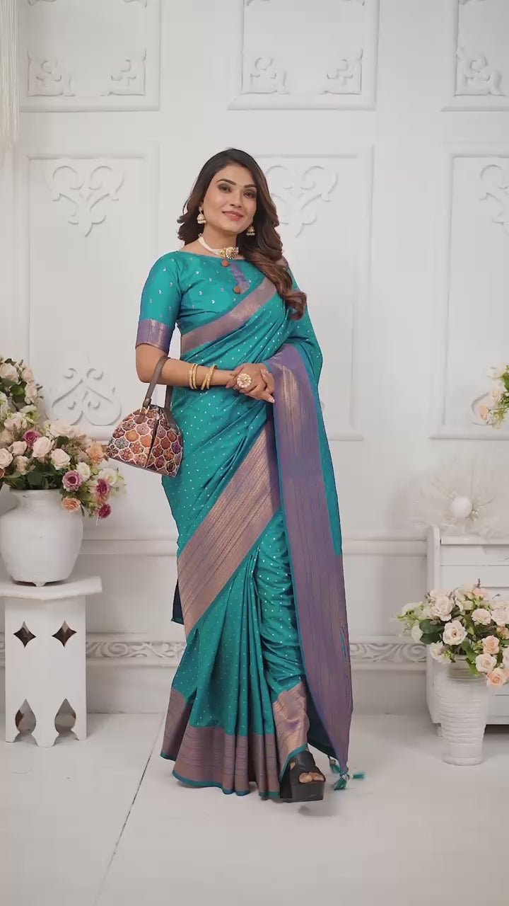 Premium Soft Silk Saree with Woven Buttis, Zari Border & Rich Pallu