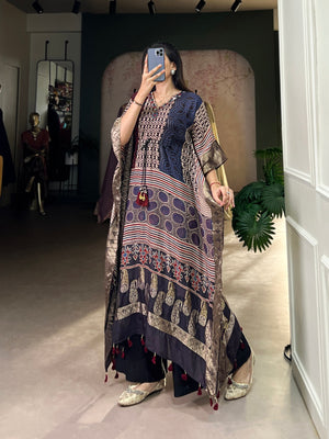 Pure Viscose Kaftan with Real Mirror Hand Work & Zari Border