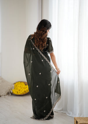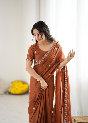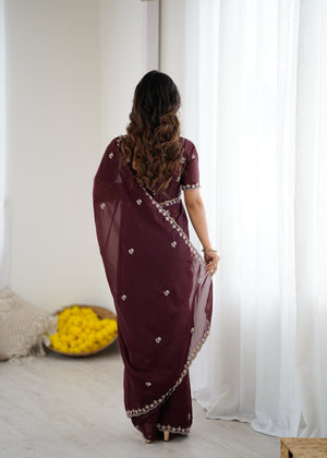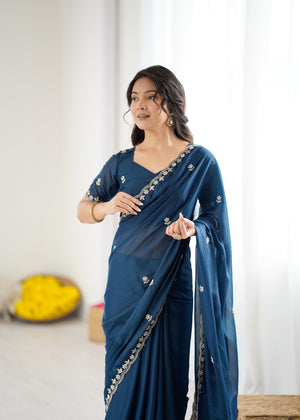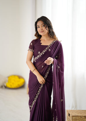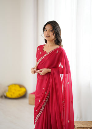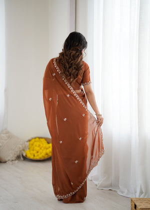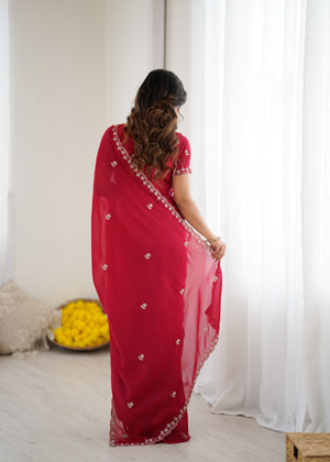 Heavy Star Georgette Silk Saree with Embroidery & Moti Work