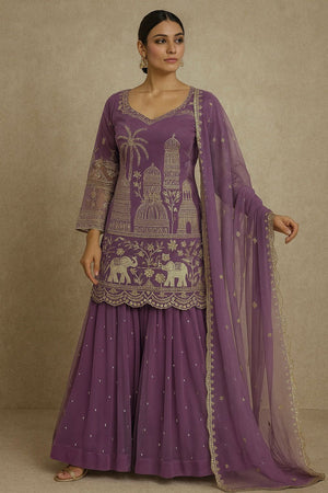 Designer Twill Net Embroidered Top, Palazzo & Dupatta Set – Party & Wedding Ready-to-Wear